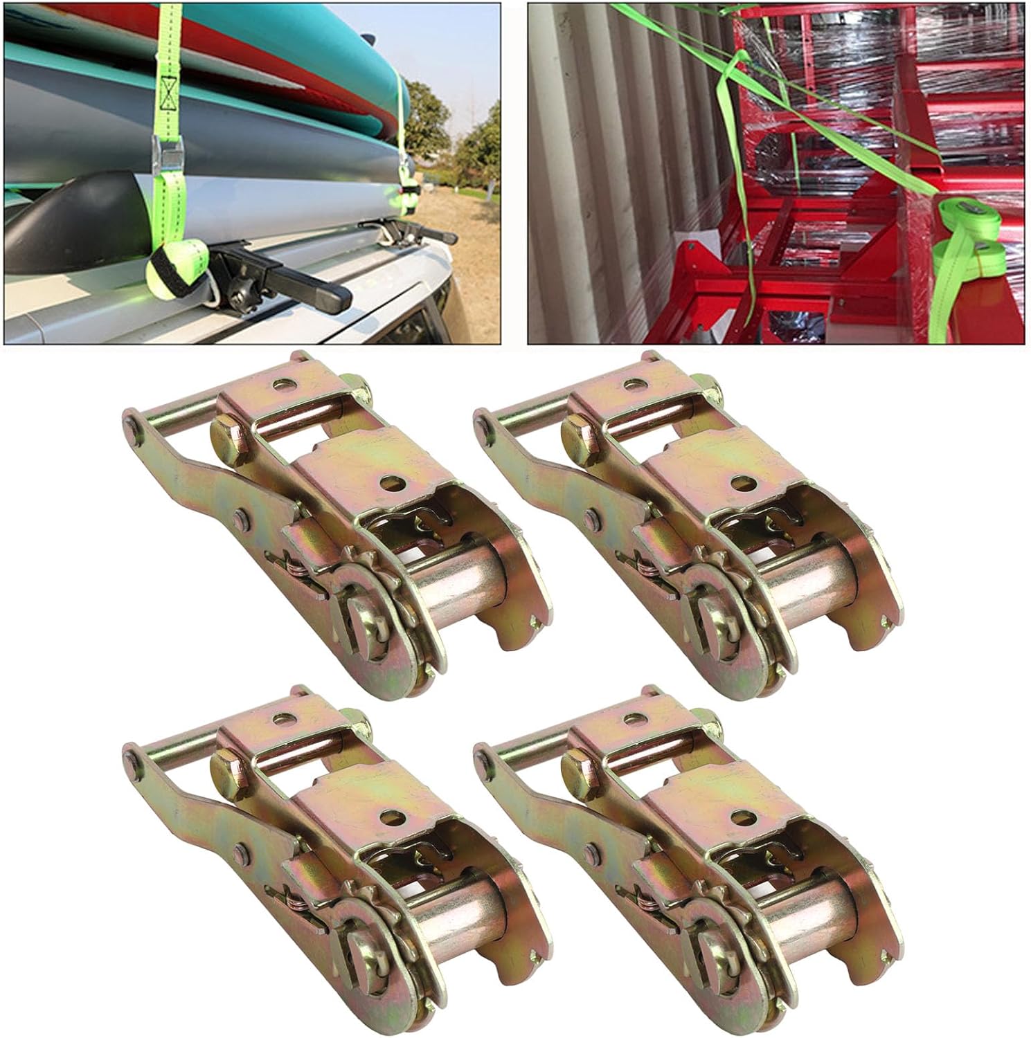 Product description Item Type: Ratchet Strap TensionerMaterial: Carbon SteelPull Force: 1500KGSSuitable Strap: 1-1/16 Inch WidePackage List:4 x Ratchet TensionerNote:The strap is not included. Manufacturer Contact Information 1